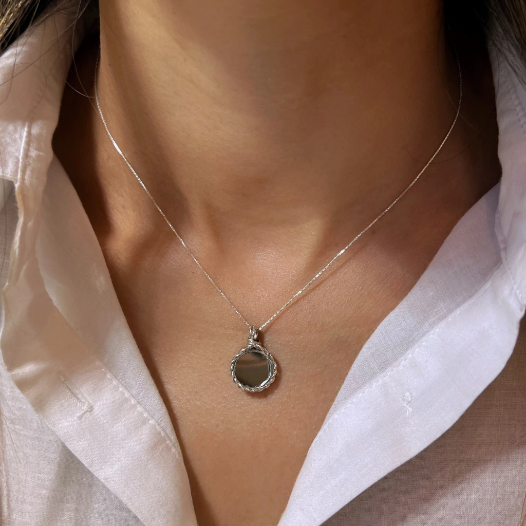¡Descubrí nuestra hermosa Cadena de 45cm con Espejito Rebota Envidia! Confeccionada en plata 925, esta pieza es el accesorio perfecto para añadir un toque de elegancia a tu look. Su diseño distintivo con un espejito refleja la luz de manera encantadora, atrayendo miradas y admiración.