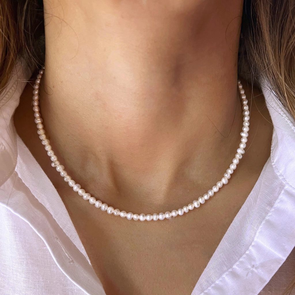 ¡Descubrí nuestro Collar de Perlas Marilyn de 3 y 4mm! Este elegante collar, disponible en longitudes de 40 o 45 cm, está confeccionado con perlas naturales y plata 925, lo que lo convierte en una joya atemporal y sofisticada.