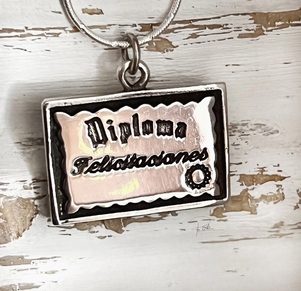 ¡Presentamos nuestro Dije Diploma elaborado en plata 925! Este elegante dije mide 2cm x 1cm y es ideal para llevar un símbolo de logro y orgullo. Además, tiene la opción de grabado en la parte de atrás, permitiéndote personalizarlo a tu gusto.