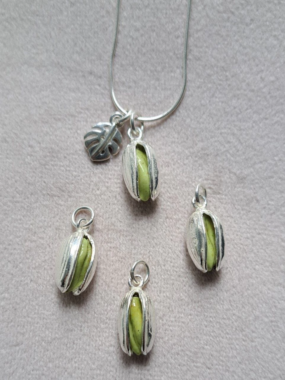 ¡Sumate a la originalidad con nuestro Dije Pistacho de plata 925! Este delicado y único dije tiene el tamaño real a escala de un pistacho, ideal para quienes buscan un accesorio diferente y lleno de estilo. Su acabado en plata garantiza calidad y durabilidad, perfecto para llevar en tu cadena favorita o regalar a alguien especial.