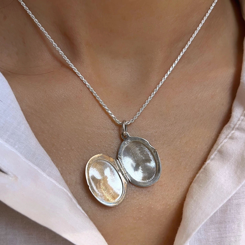 Destácate con nuestro Relicario Luz del Alma, una pieza de plata 925 única en su estilo. Este relicario ha sido tallado en ambos lados, lo que lo hace especial y distintivo. Su diseño elegante lo convierte en el complemento perfecto para cualquier ocasión. Recuerda que el precio no incluye la cadena, pero puedes encontrarla como "cadena Mabel"