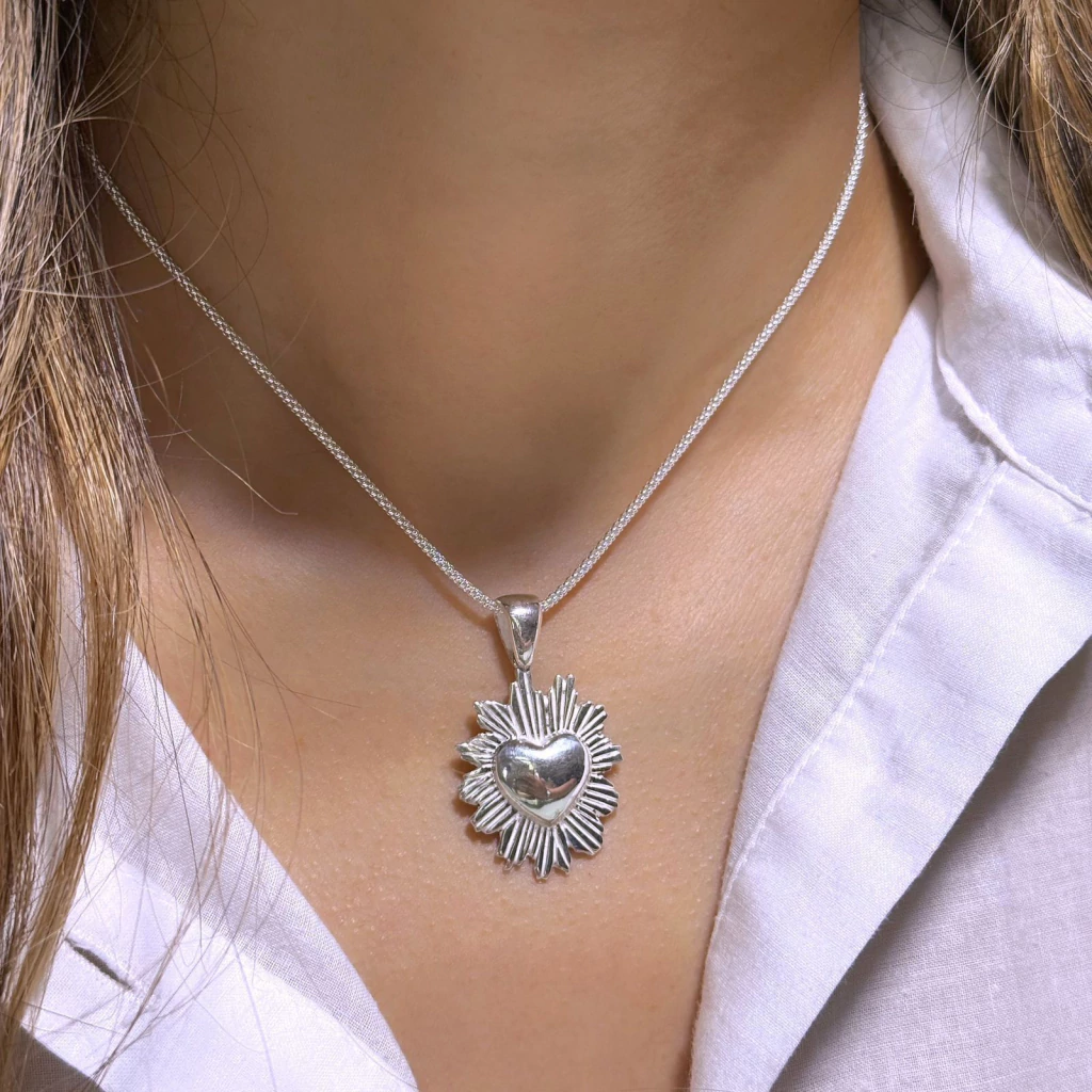 ¡Descubrí el hermoso Sagrado Corazón de plata 925! Esta delicada pieza mide 3 cm, más el drop, y es perfecta para darle un toque especial y espiritual a tu estilo diario.