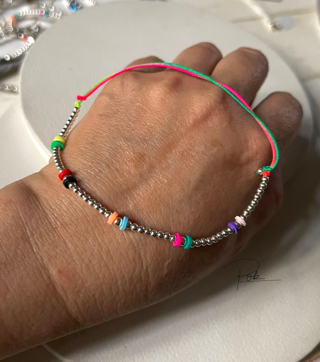 Deja que tus pies cuenten una historia de color y elegancia con nuestra Tobillera Arco Iris de plata 925. Este encantador accesorio, ajustable y lleno de vida, evoca la belleza de un arco iris en cada paso que das.